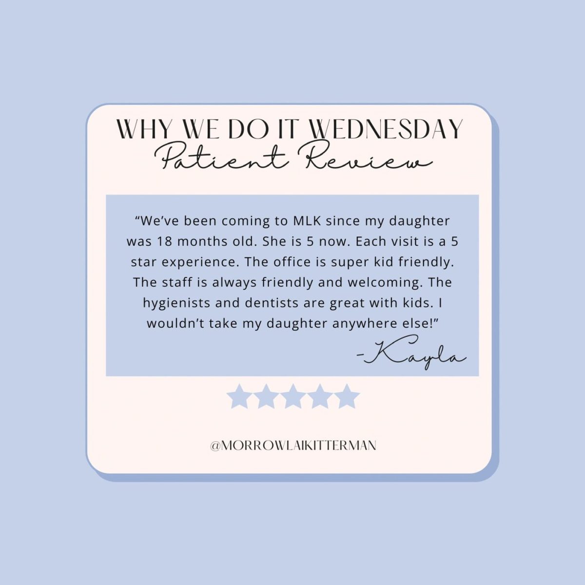 Our goal at MLK Dentistry is to create happy, healthy smiles for children. We want to make each appointment as easy and pain free as possible. We know that great dental hygiene and dental care sets children up for success in the years to come, and we want to have a positive impact on your children’s dental hygiene. We love to see our returning patients doing well, growing taller, and thriving in their dental hygiene.